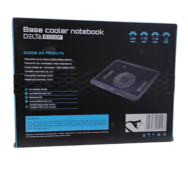 A Base Refrigerada Delta B1010P é projetada para manter seu notebook refrigerado durante o uso intenso. Equipado com uma ventoinha de 14 cm, oferece alta eficiência na dissipação de calor. Seu design ergonômico proporciona conforto durante longas sessões de uso. A iluminação LED azul adiciona um toque moderno e elegante ao ambiente.