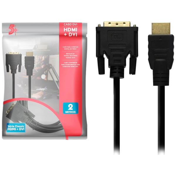 Cabo DVI-D Macho para HDMI Macho 018-8702 2m 5+ Box