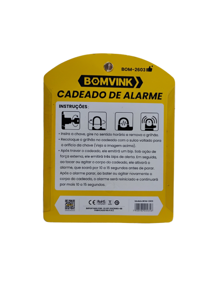 Cadeado Antifurto com alarme sonoro - BOMVINK