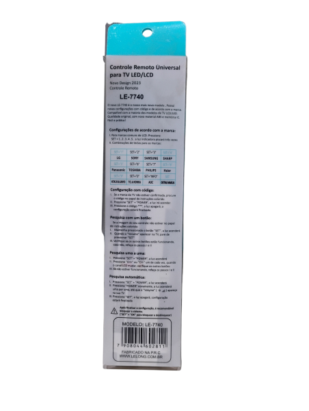 O Controle Universal Lelong LE-7740 é compatível com a maioria das TVs LED e LCD, permitindo controlar canais, volume e funções do menu de forma prática e rápida. Fácil de configurar e com excelente alcance, é a solução ideal para substituir controles perdidos ou danificados.