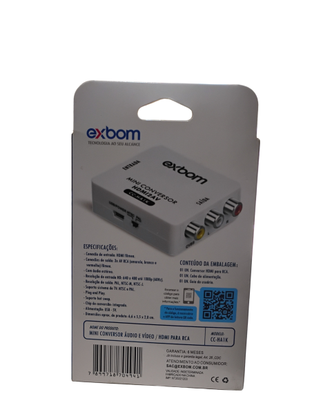 O Mini Conversor HDMI para RCA EXBOM conecta aparelhos modernos a TVs e dispositivos antigos com entrada AV/RCA. Compacto e fácil de usar, garante áudio e vídeo de qualidade em resolução até 1080p, ideal para notebooks, videogames, DVD players e muito mais.