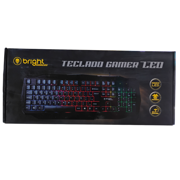 O Teclado Gamer LED Bright 0464 oferece design robusto com iluminação em LED, conexão USB e 107 teclas no padrão ABNT2. Ideal para gamers que buscam desempenho e estilo em seus setups.